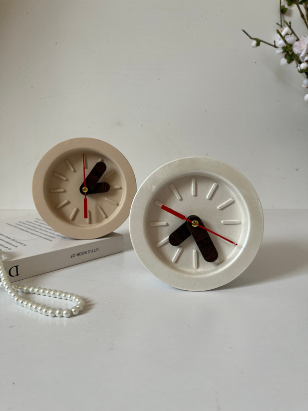 ساعت رومیزی بتنی یکی از خاصترین و شیکترین اکسسوریهاییست که میتوانید به دکور خانه یا محل کارتان اضافه کنید. بدنهی تمام بتنی این ساعت، آن را به یک عنصر دکوراتیو با دوام و زیبا تبدیل کرده که در عین سادگی، حس قدرت، ثبات و مدرنیته را منتقل میکند. طراحی آن به گونهای است که با فضاهای مینیمال، صنعتی یا حتی دکورهای هنری به خوبی هماهنگ میشود.