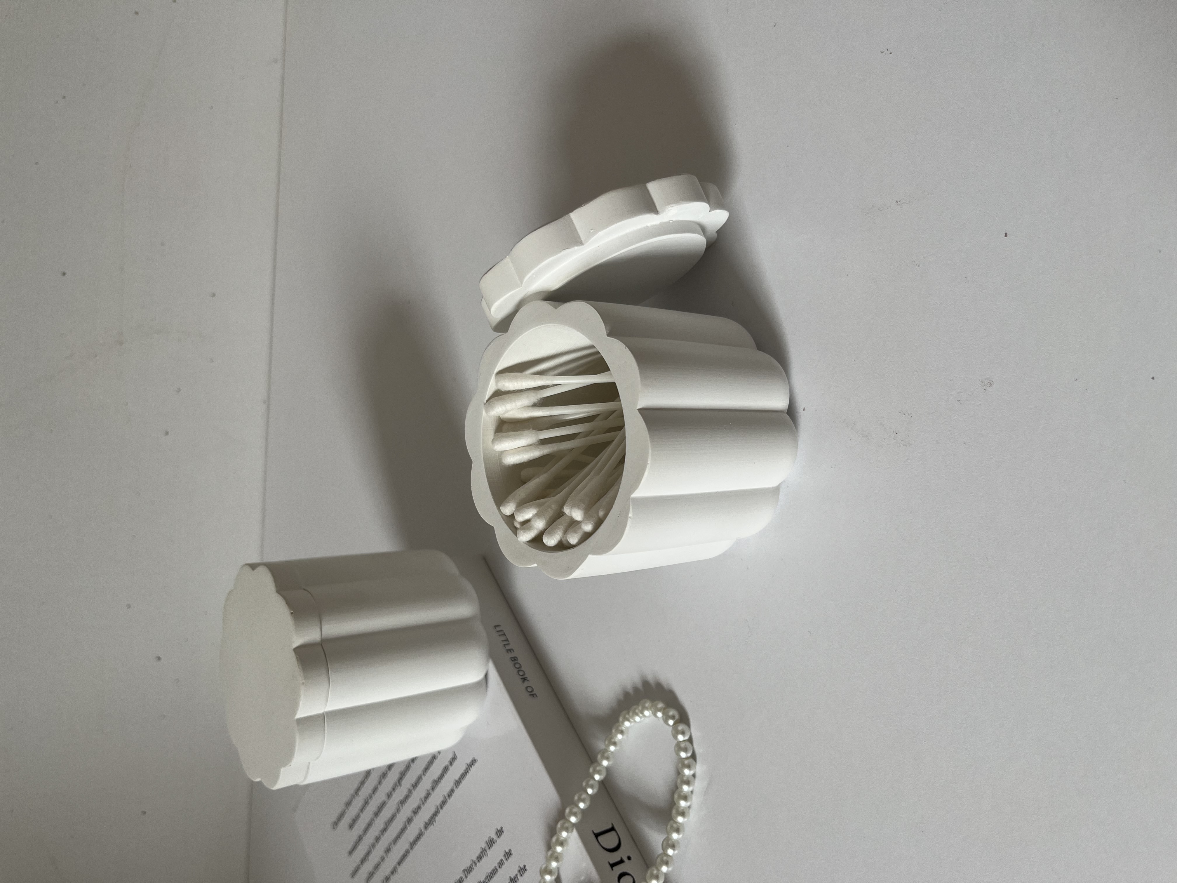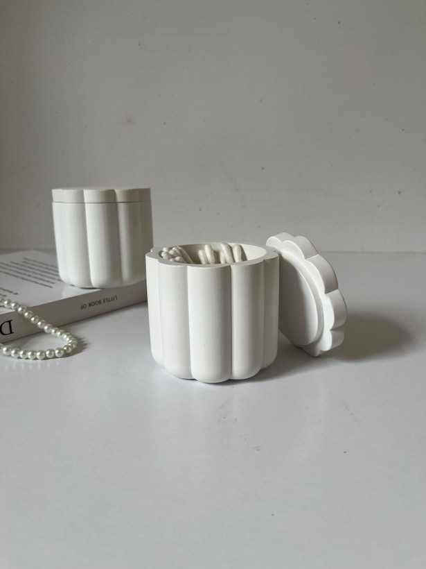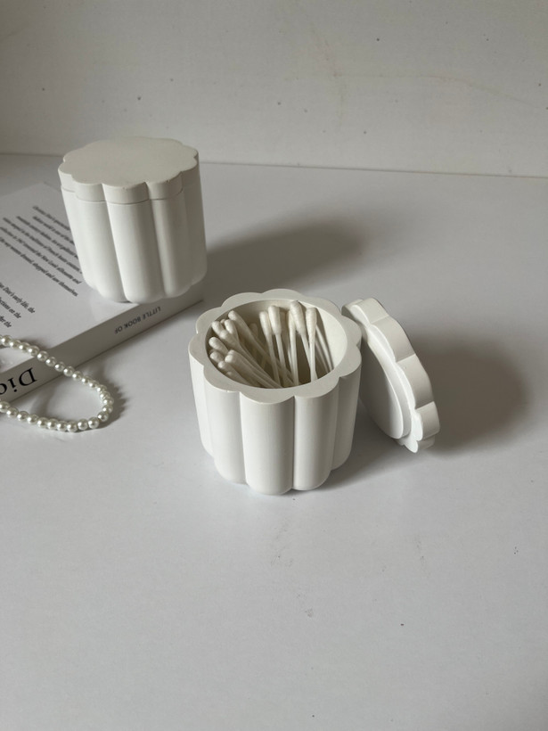 این محصول با طراحی دربدار و دکوراتیو، از ورود گرد و غبار به داخل جلوگیری کرده و به حفظ بهداشت پدهای آرایشی و گوش پاککن کمک میکند.