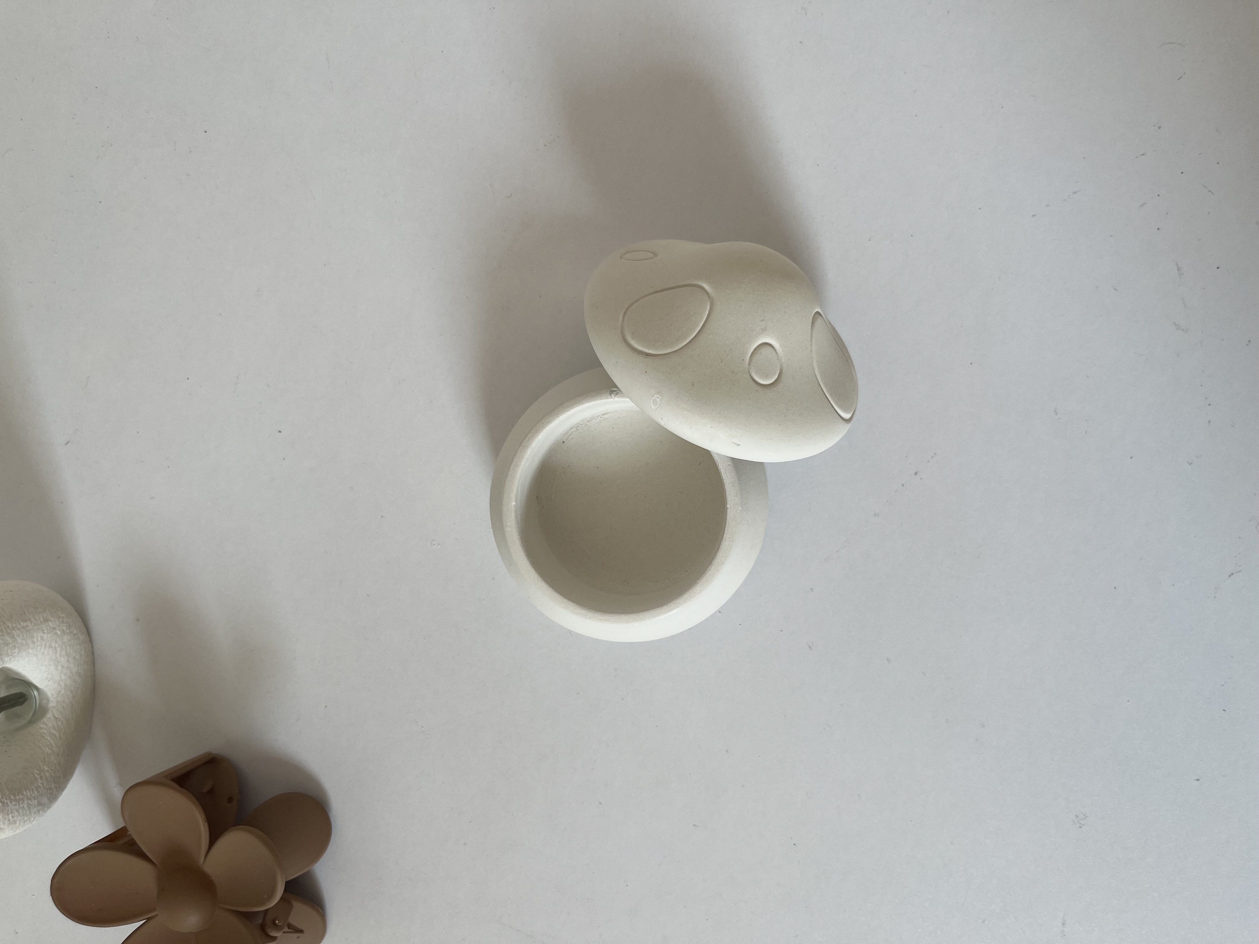 طراحی قارچی و فرم جمعوجور این جا پد آرایشی بتنی باعث میشود فضای زیادی اشغال نکند و در عین حال جلوهای فانتزی و هنری داشته باشد. این محصول انتخابی ایدهآل برای افرادی است که به دکوراسیون میز آرایش، نظم لوازم آرایشی و خرید اکسسوری بتنی خاص اهمیت میدهند.