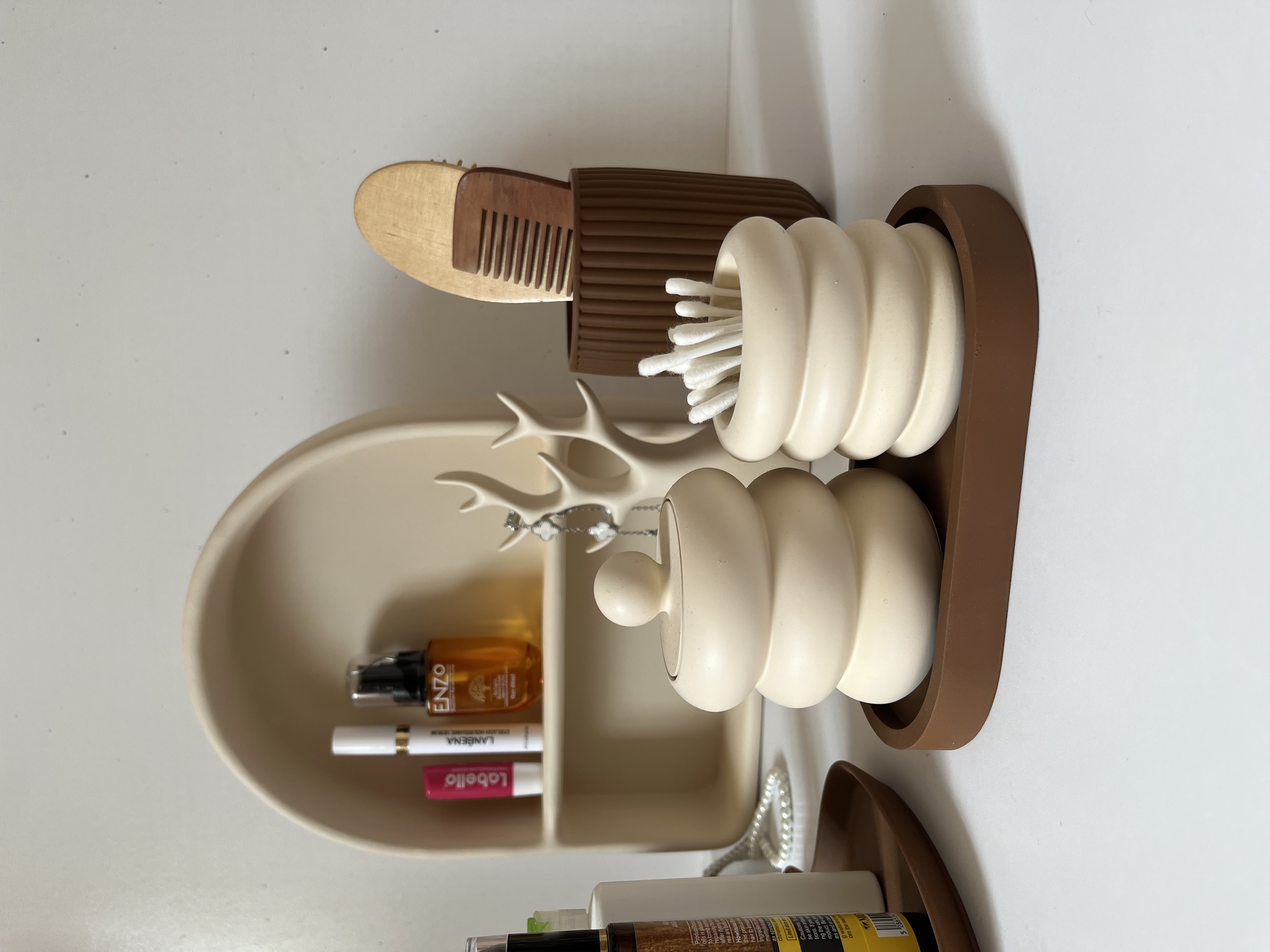 وجود بخشهای مجزا برای نگهداری براش آرایشی، پد آرایش و گوشپاککن باعث دسترسی آسان و نظم همیشگی میشود.