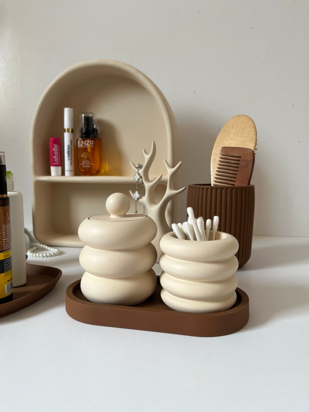 این محصول با طراحی ساده و بدون شلوغی، به مرتبتر دیده شدن فضای میز آرایش کمک میکند. بتن استفادهشده در ساخت این ست، آن را در برابر رطوبت و استفاده روزمره مقاوم کرده و نسبت به نمونههای پلاستیکی عمر طولانیتری دارد.