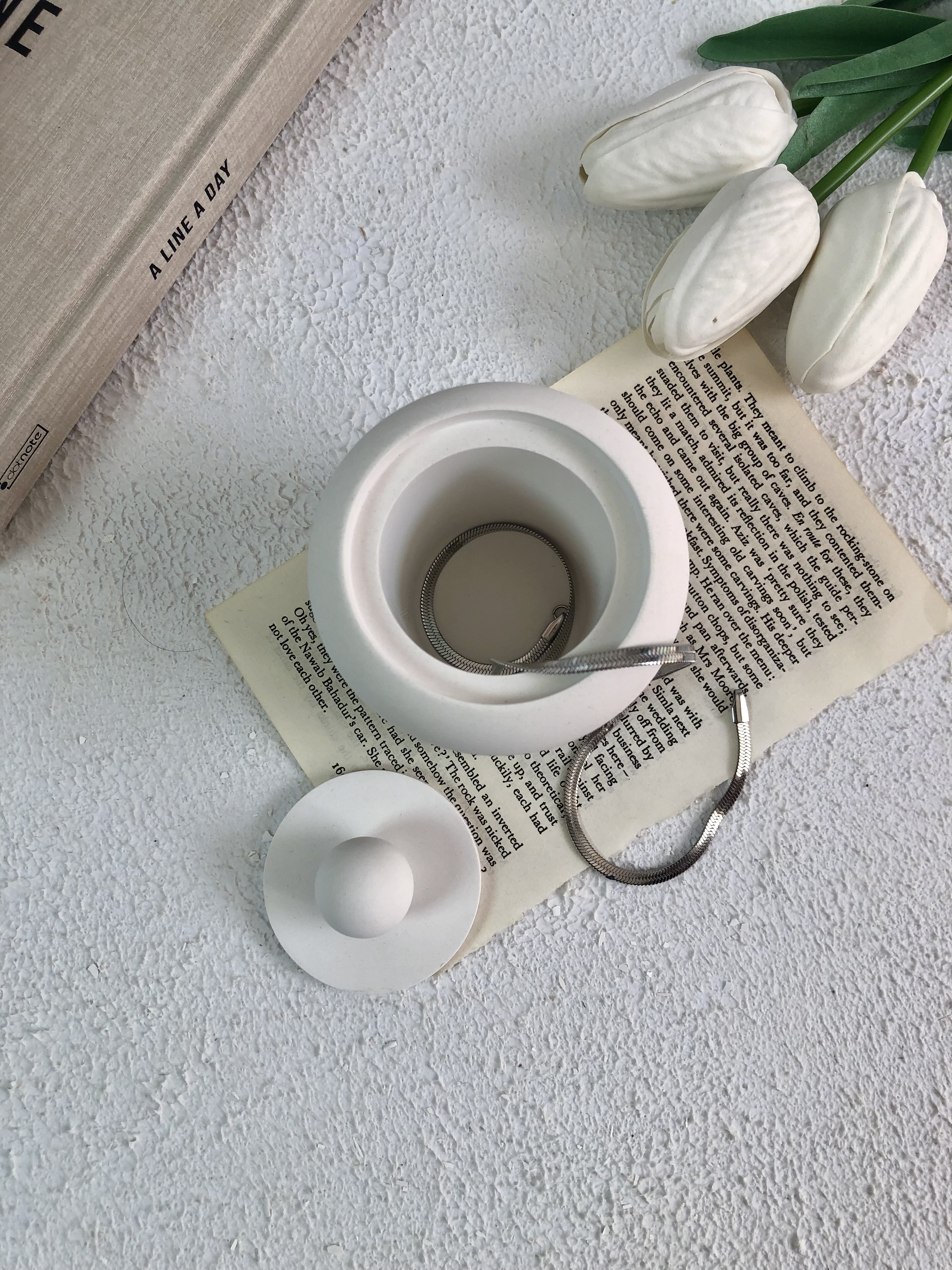 ظرف بتنی با درب مناسب نگهداری شمع و پد آرایشی
